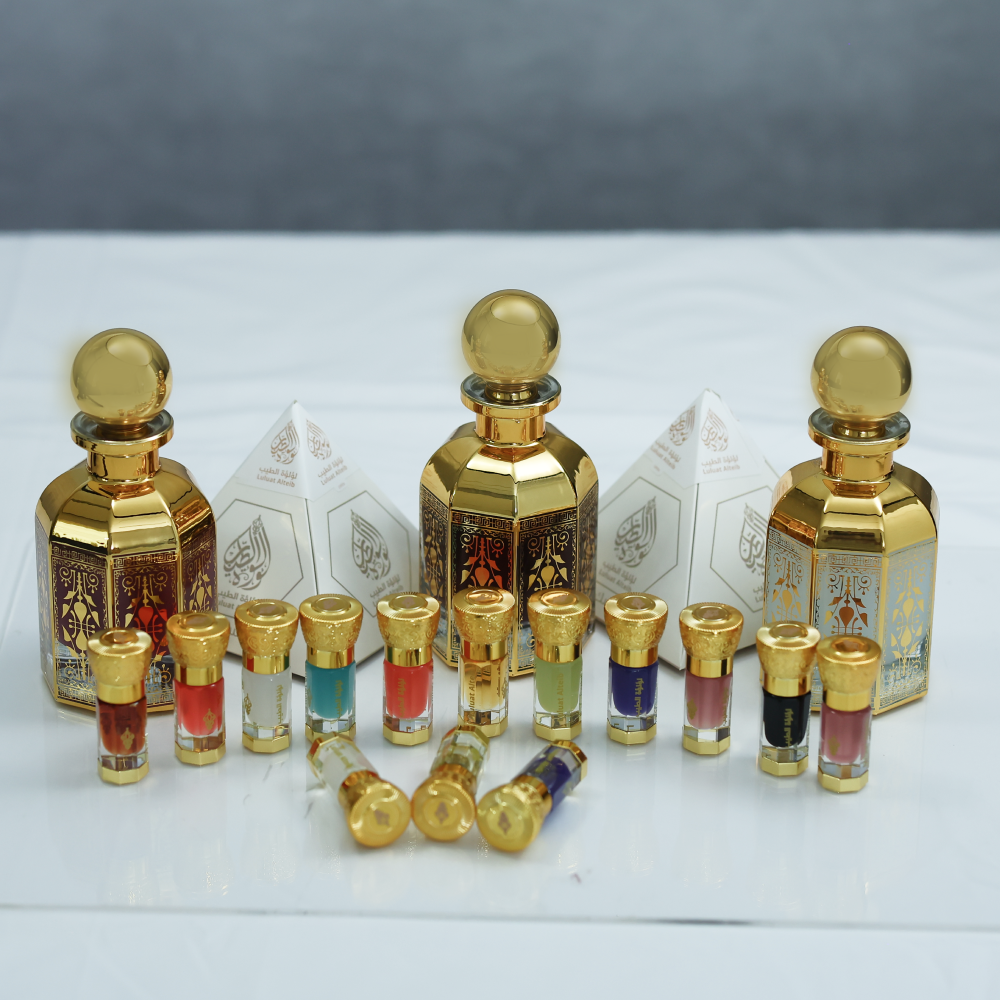 توزيعة فاخرة تحتوي على زجاجتين صغيرتين (3 مل لكل واحدة)، الأولى تضم مسك رومان برائحته الناعمة والعاطفية، والثانية تحتوي على مسك أزرق بنفحاته المنعشة والعصرية. تأتي التوزيعة بتغليف أنيق، ما يجعلها خيارًا مثاليًا لتوزيعات المناسبات مثل الأعراس، التخرج، المواليد، والعيديات.